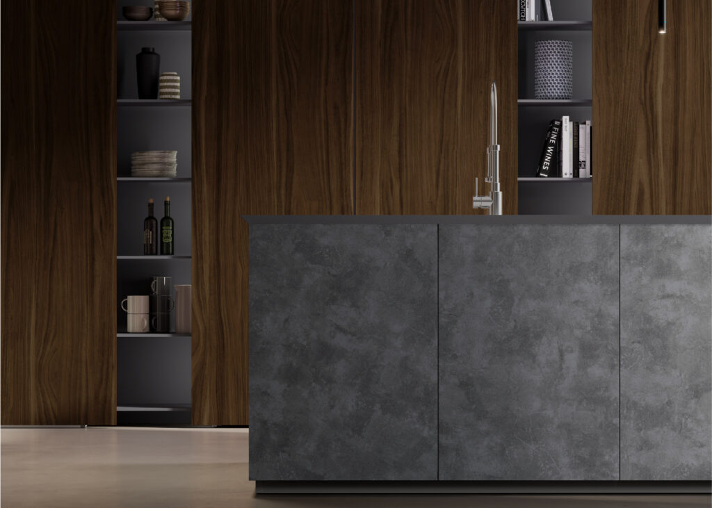 來自義大利的「Lamitex 奈美特/超膜」,採用全球獨家「CLPL 層壓技術」,透過三層複合結構讓飾面材料更有韌性、不易裂、不易變形。表面搭配精緻的同步雕刻紋理,不論木紋或石材紋理,視覺與觸感都極為真實,原味呈現義大利原創工藝的美學與質感
