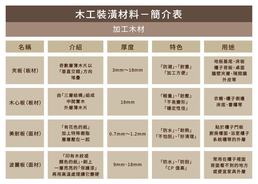 常見木工裝潢材料一張表看懂