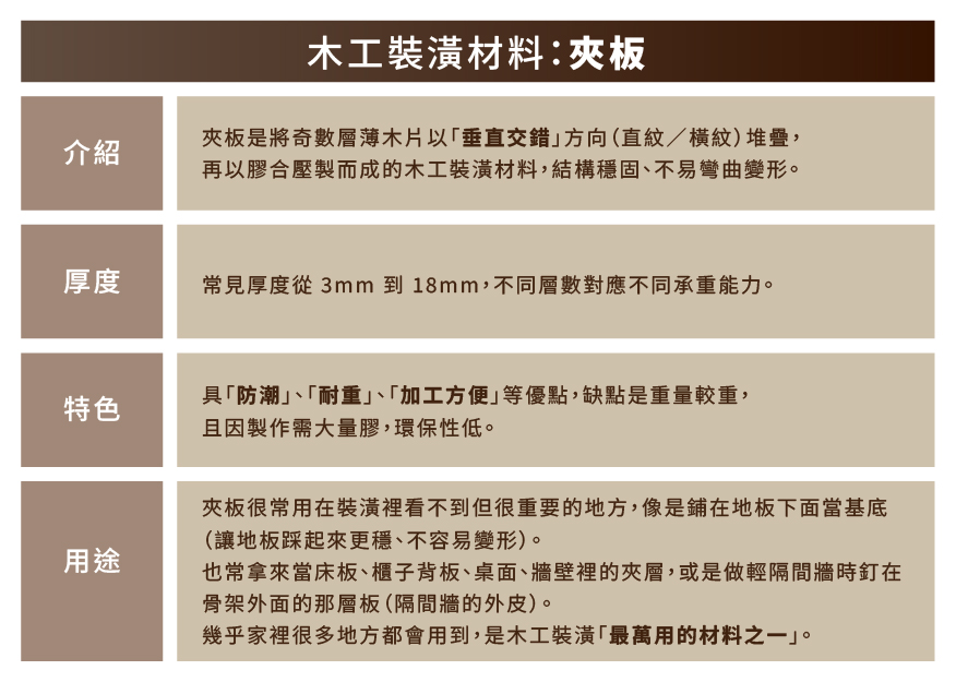 ▋💡常見木工裝潢材料介紹
